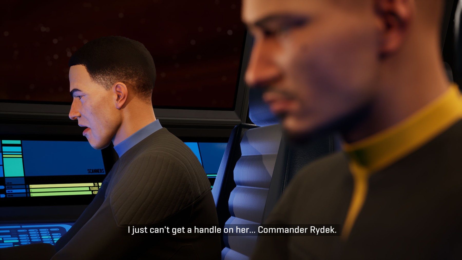 While the characters in the game are fixed and created, you do get a ton of control over how they interact with the story and other characters.  While my Carter was a caring and empathetic soul, my Jara was ambitious, brash and sometimes, overbearing.  I love a game that lets you take a character and build them through choice as to how you feel they should react.  The character choices give you so much nuance, down to creating your own executive code (can’t tell you mine, you might try to blow up my ship!), down to how you call for warp (I went with the assertive, “Do It!”).  And yes, you will have a story reason to take over the ship and it is pretty dang good to have responsibility for the entire crew of the Resolute.