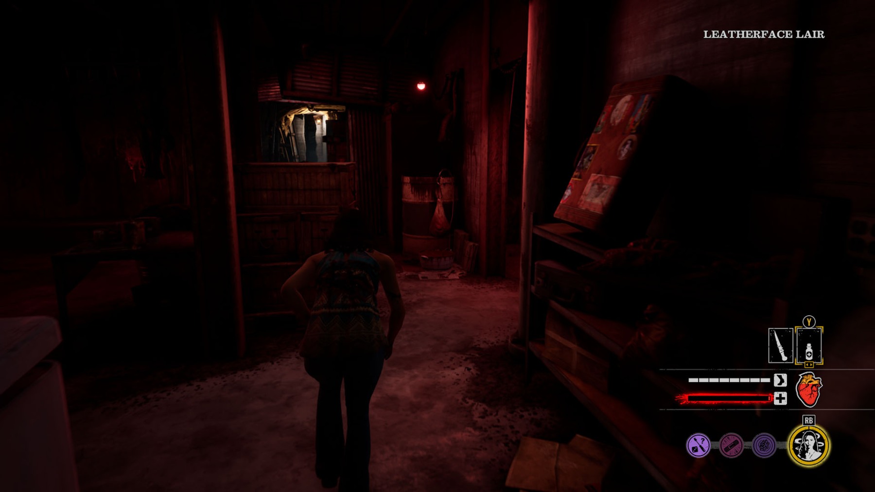 Texas Chain Saw itself is a beautiful game and a significant graphical update from Friday the 13th. Lighting effects are fantastic with fingers of light dancing through foliage. Starting under the house as a Victim, the map is dark, with noises and tension echoing all around you as Family scurry around to find you. As you find your way out of the basement, you are presented with several ways to escape the grounds. I like games like these that give you options in your way to escape. Maybe you want to use the direct route out. You can, but maybe you try opening a pipeline in the basement. No matter what your choice is, it gives you different ways to approach each match.